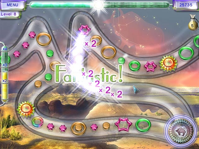 The stars have aligned to bring this astronomical matching game straight to your desktop. Stack up colored rings to make them disappear from the screen in two different gameplay modes. In Action mode, you'll have to step up the pace to keep the advancing rings from getting too far. Want to relax? Kick back and take your time in the zen-like Strategic mode. Whichever way you choose to play, there are dozens of cosmically fun levels waiting for you! ![]()